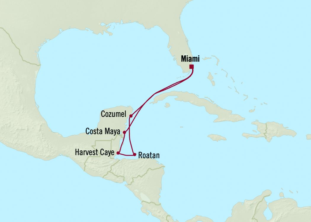 Sail from Miami roundtrip through the Carribbean on a tropical Re-Treat. A sun filled cruise exploring the wonders of Mexico, Belize and Honduras.